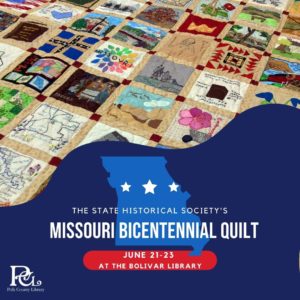 Celebrate 200 years of Missouri’s statehood by visiting the Bolivar library to see the Missouri Bicentennial Quilt on display.